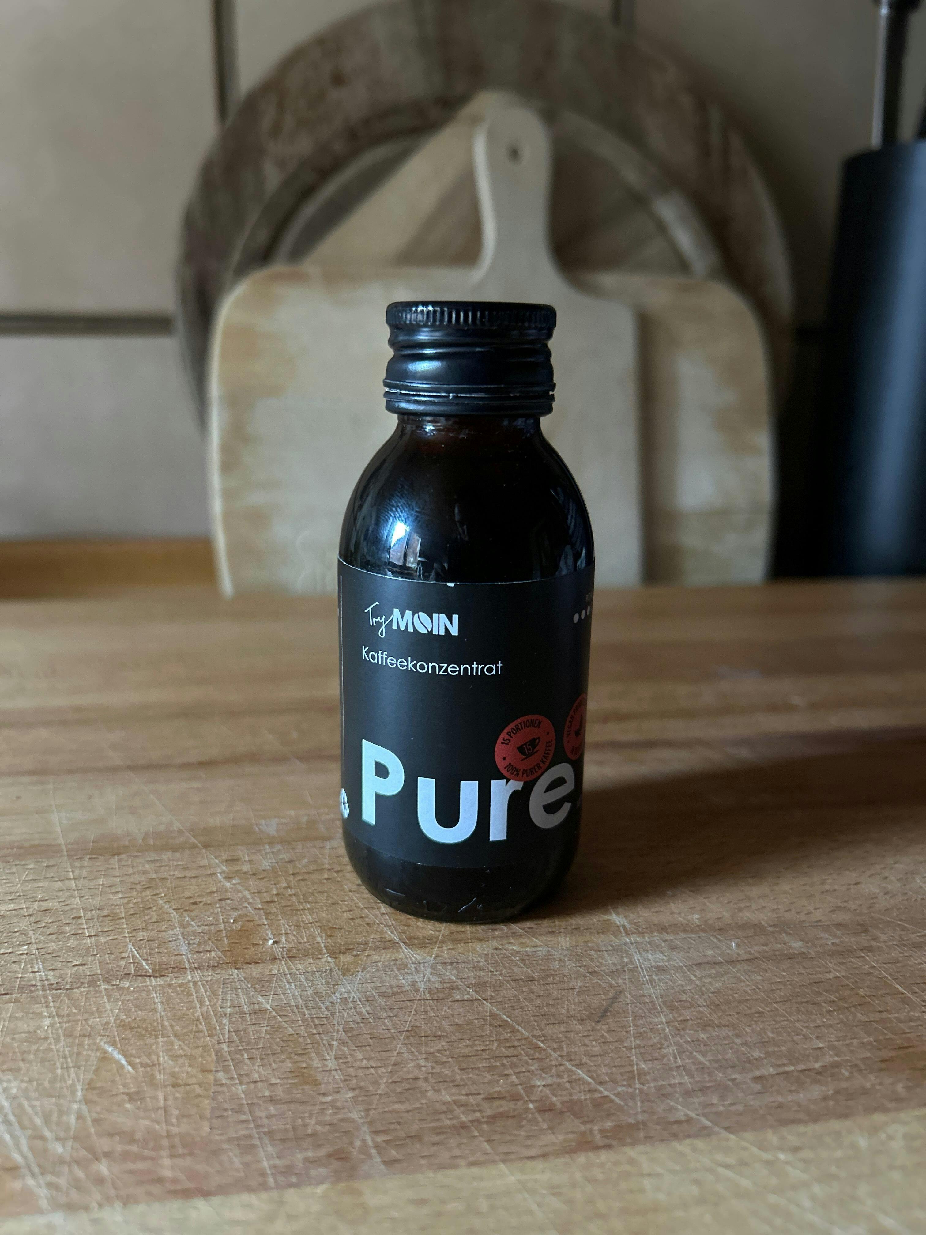 Moin Kaffeekonzentrat ist 100% reiner Kaffee, jedoch 30 mal so stark wie ein gewöhnlicher Filterkaffee. Für unsere gesüßten Sorten kommt zudem noch ein Sirup auf Basis von natürlichen Aromen hinzu. Du gibst einfach 1-2 Löffel in Wasser oder Milch und fertig ist dein perfekter Kaffee!