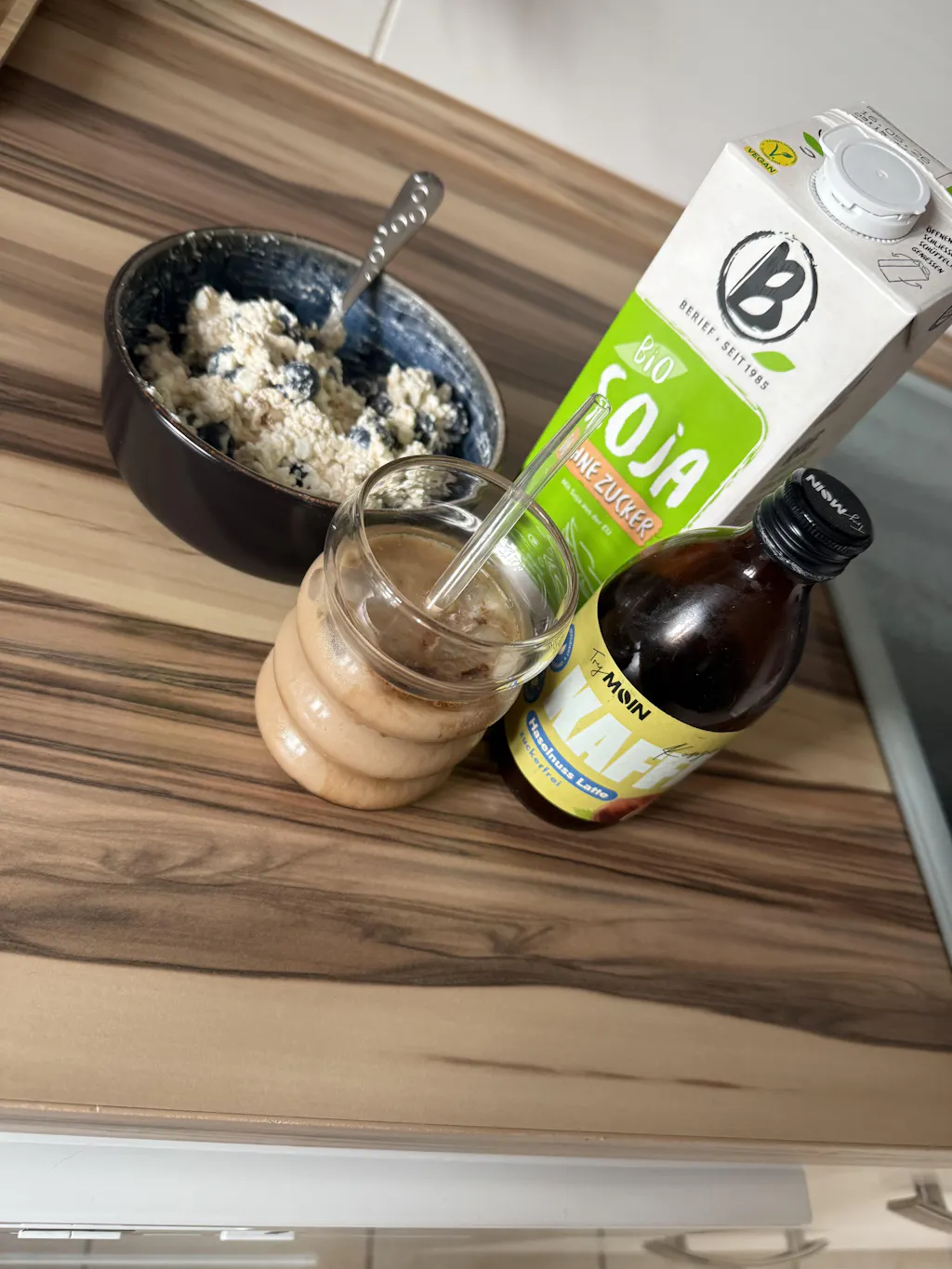 Einfach Glas mit 150ml Milch oder Pflanzendrink füllen, ca. 1 EL TryMoin dazu & ready!