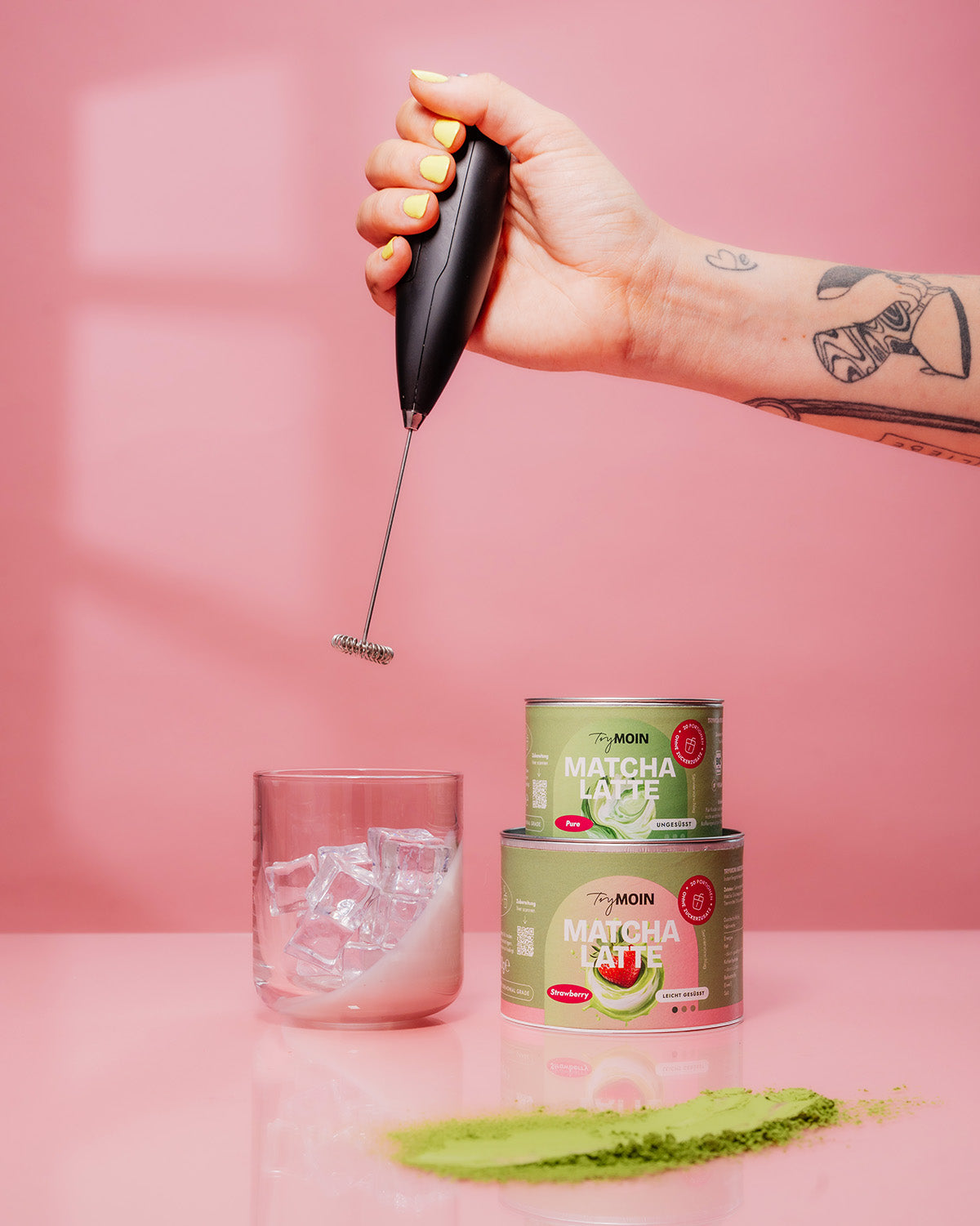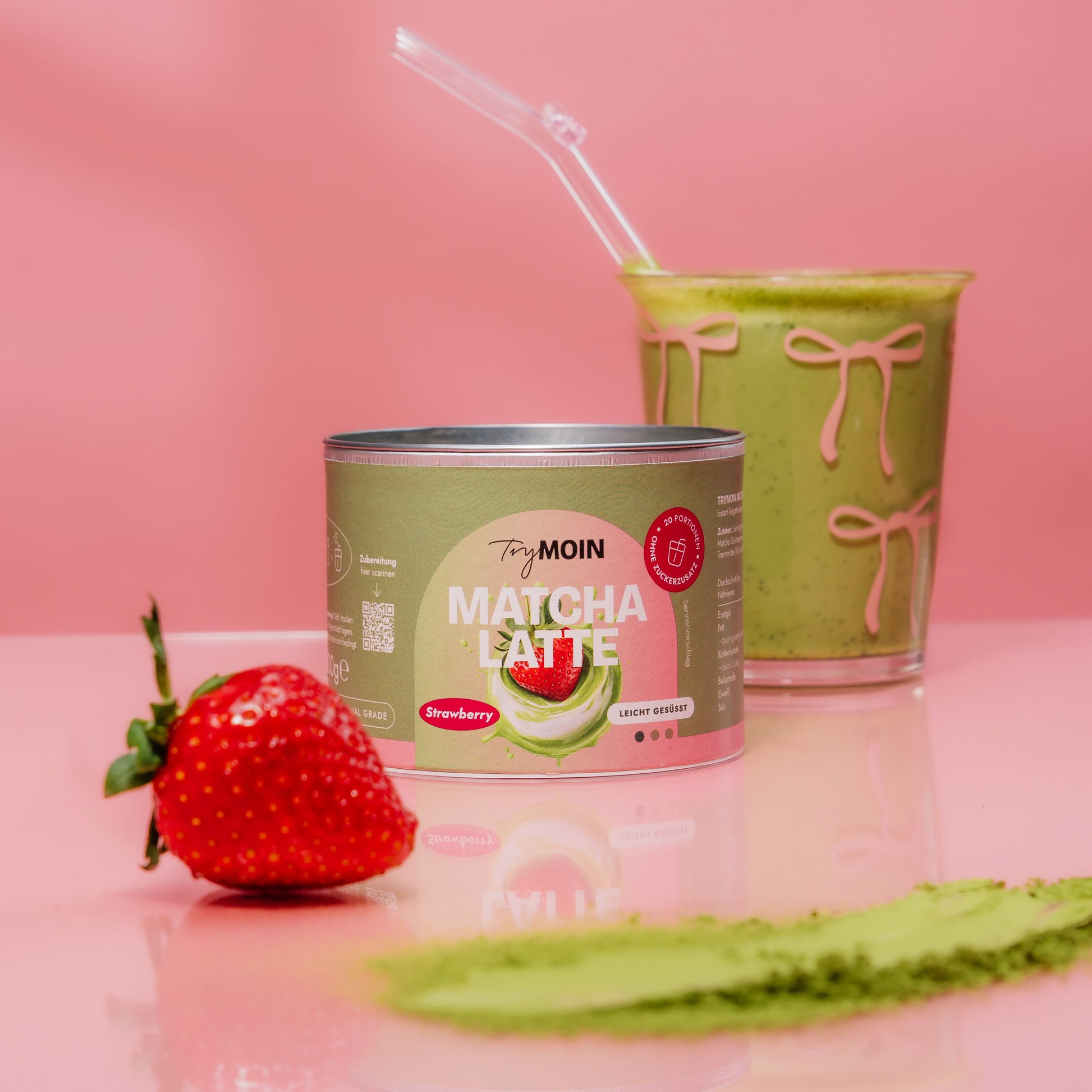 Matcha neu gedacht: Neben reinem Matcha bekommst du bei uns leckere Sorten wie Strawberry oder Vanilla