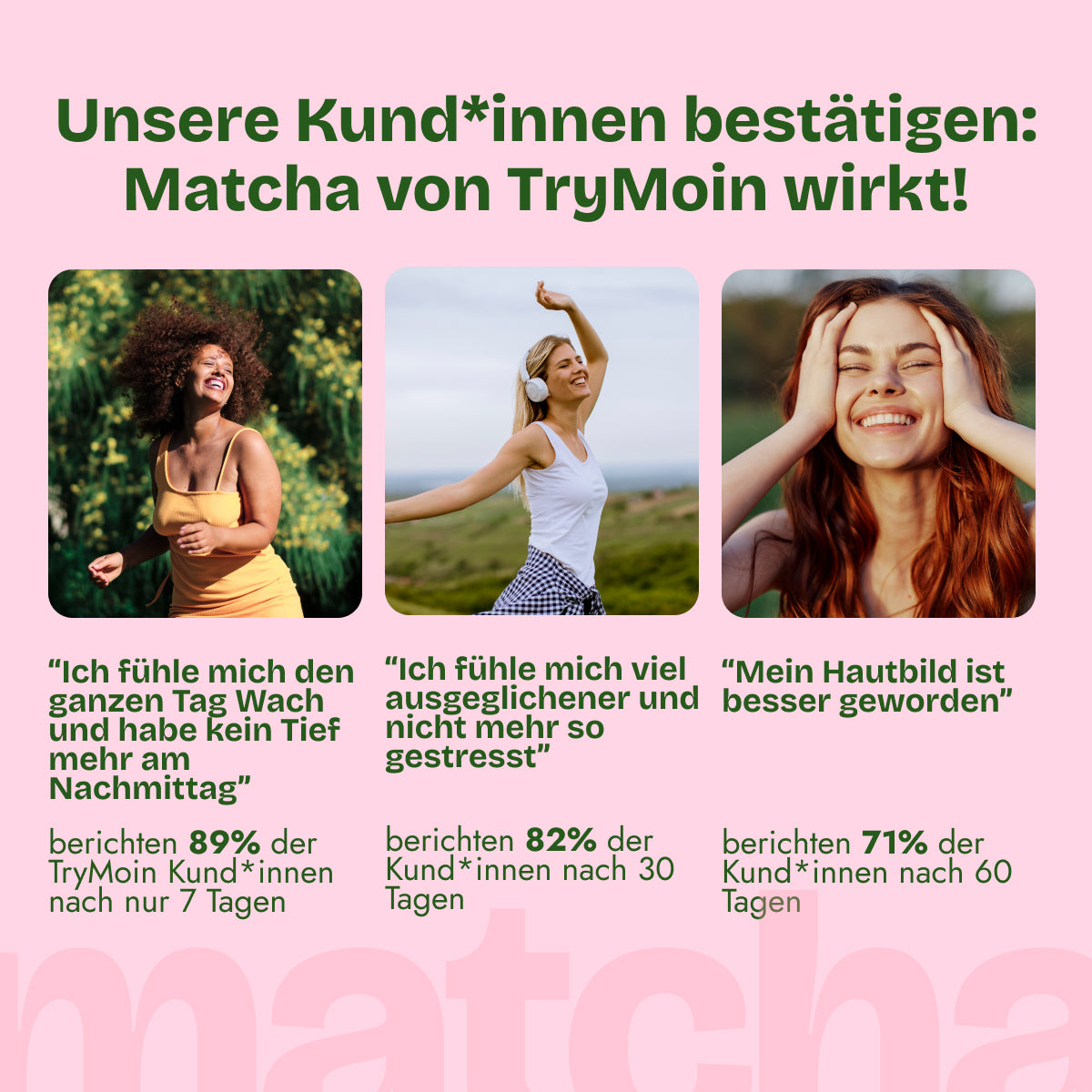 Matcha liefert dir 6 Stunden lang anhaltende, Energie. Das Koffein im Matcha entfaltet sich langsam und gleichmäßig.