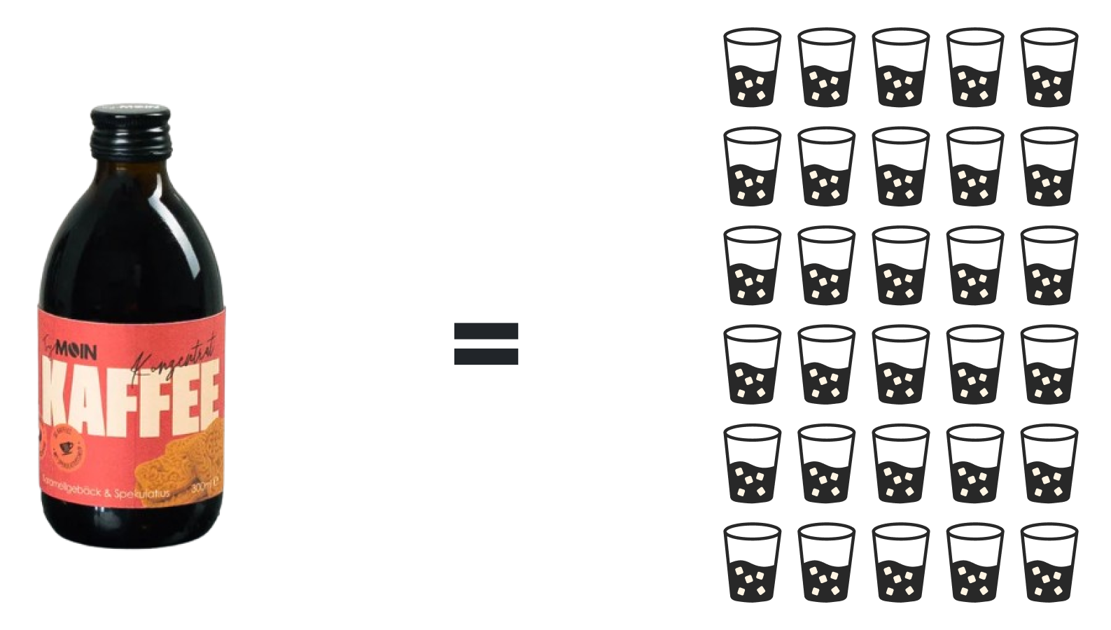 Moin ist 30x so stark wie ein herkömmlicher FiIterkaffee und etwa 6x so stark wie ein Espresso. So reicht eine kleine Flasche für 30 Kaffees!